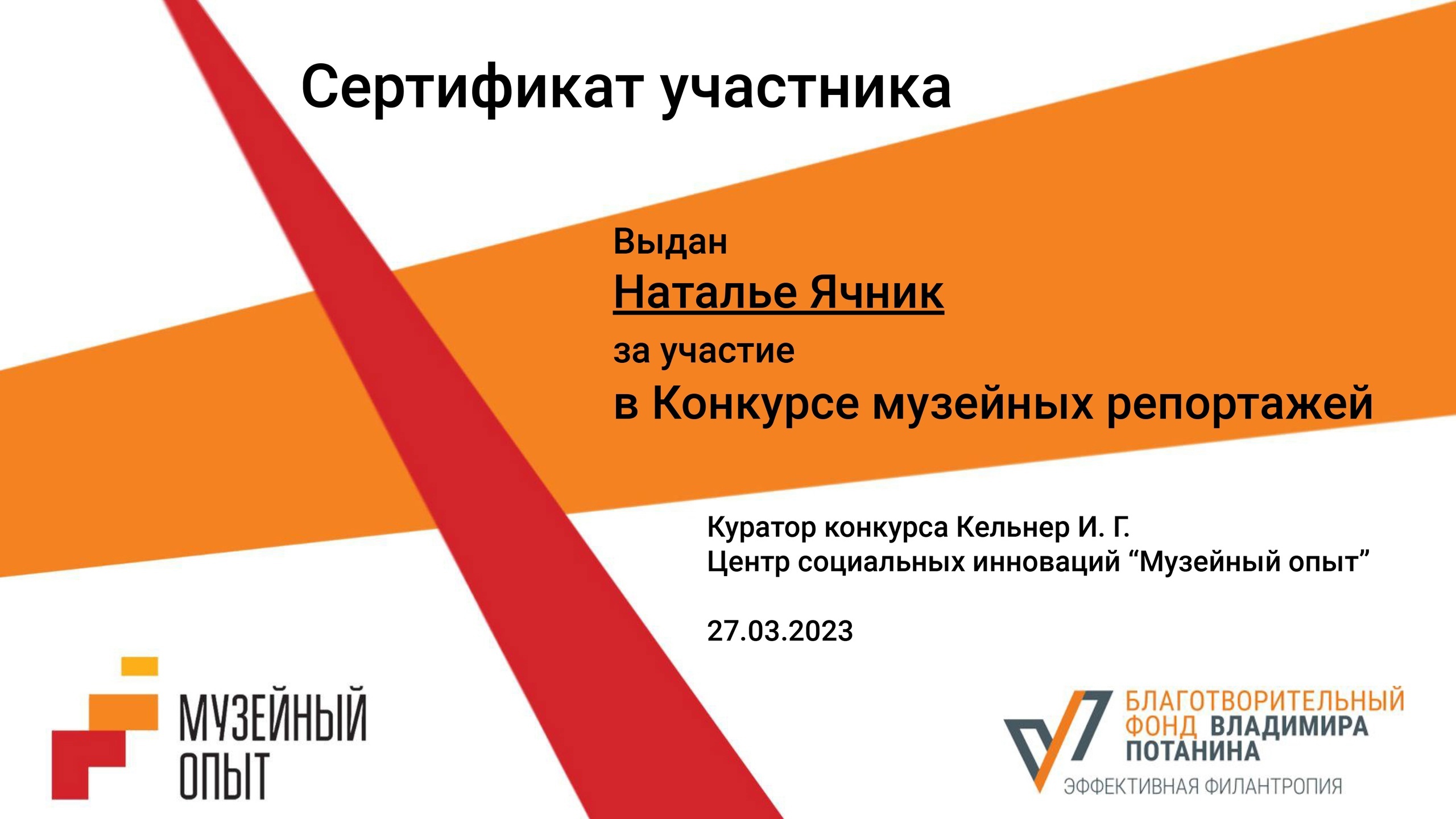 Конкурс реализуется ЦСИ «Музейный опыт», созданным Некоммерческим партнерством «Центр развития музейного дела», победителем конкурса по приглашению благотворительной программы «Эффективная филантропия» Благотворительного фонда Владимира Потанина.