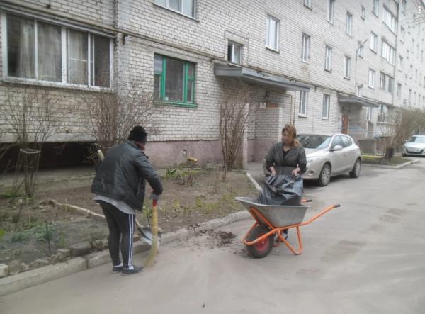 Уборка придомовой территории на ул. Григория Соколова