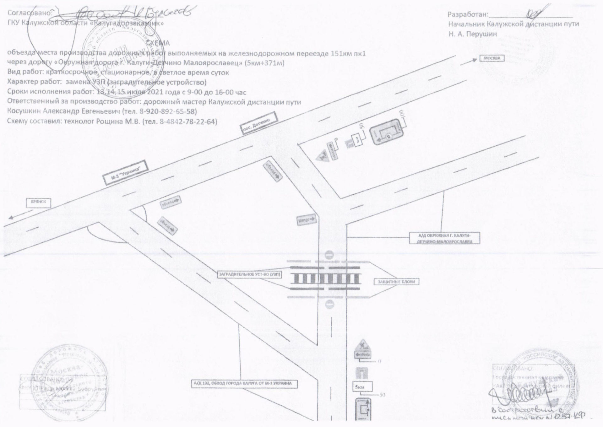 Объезд ремонтируемого переезда будет осуществляться по автомобильной дороге М-3 «Украина» в соответствие с установленными на время ремонта дорожными знаками.