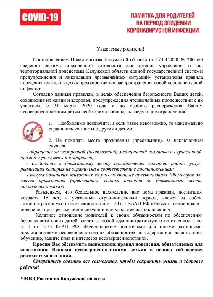 Памятка для родителей