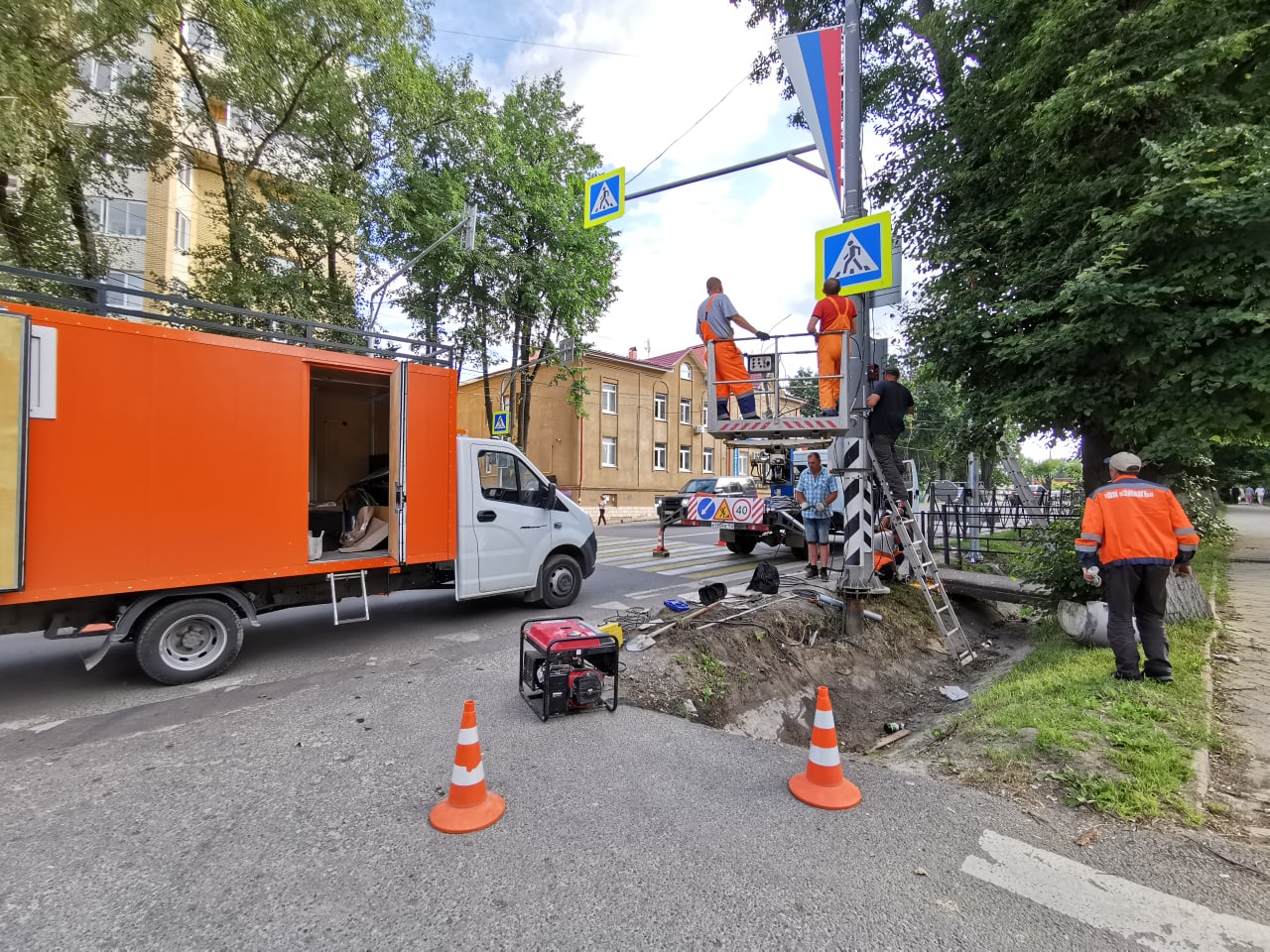 На пешеходном переходе рядом с ЗАГСом по улице Московская производится установка светофора.