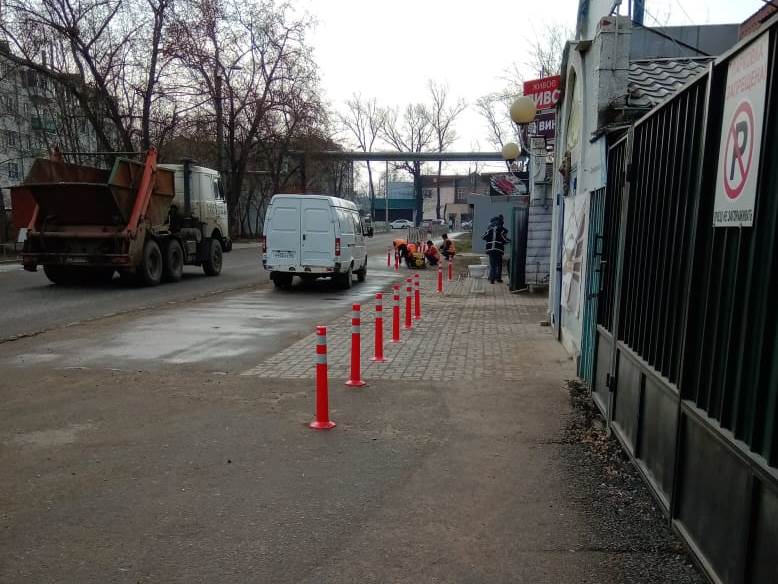 По рекомендации комиссии по безопасности дорожного движения при Администрации МО ГП «Город Малоярославец» муниципальное предприятие установило дорожные сигнальные столбики, и обезопасило пешеходную зону по ул. Коммунистическая.