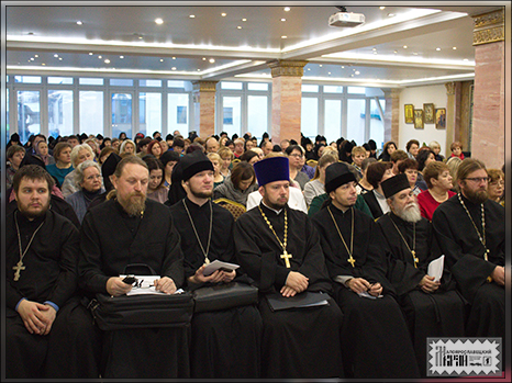 Шестая секция круглый стол-семинар «Социальная концепция Русской Православной Церкви и монашество» прошла в виде семинарского занятия по основам социальной концепции Русской Православной Церкви и вопросам практики организации социального служения при женских монастырях в актовом зале Православной гимназии при Свято-Никольском Черноостровском женском монастыре.
