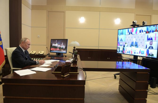 Президент России Владимир Путин  в формате видеоконференции провел совещание с Правительством и губернаторами.