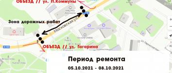 В связи с проведением аварийных работ на канализационном коллекторе по адресу ул. Московская напротив дома №3 с 05.10.2021 года по 08.10.2021 года будет ограничено движение транспортных средств.