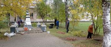 Учреждения культуры и спорта города Малоярославца провели субботник в Сквере 1812 года и у памятника Саввы Беляева.